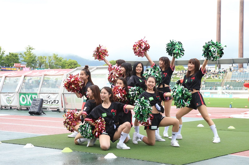 ジェフユナイテッド千葉戦では、FC岐阜応援隊のSKE48から隊長・北野瑠華さん、副隊長・太田彩夏さん、水野愛理さん、平田詩奈さんの4名が来場。会場を盛り上げてくれます。