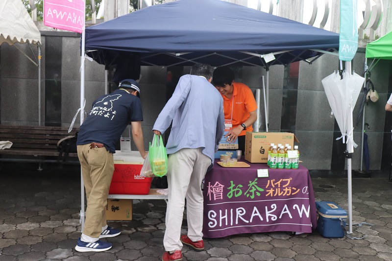 ホームタウンデーの白川町ブースでは、美濃白川茶の販売がおこなわれ、試飲も実施されました。
