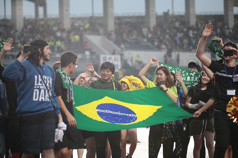 ハーフタイムには4人でスタジアムを一周。大きな声援が送られていました!