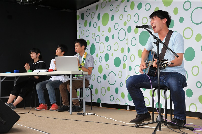 学生によるステージイベントを開催!学生放送研究会ラジスタの皆さんが司会となり、歌や手品など観客を巻き込んで大いに盛り上げてくれました。