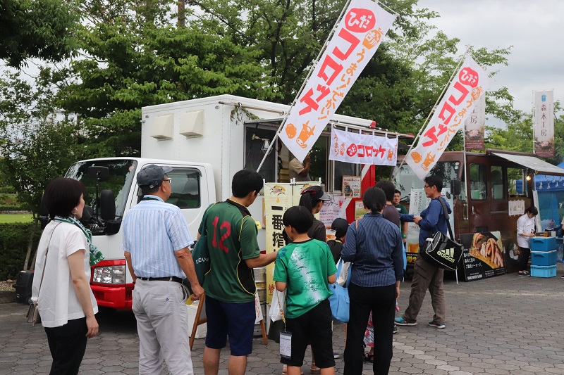 第1弾の千葉戦では、ひだコロッケ本舗さんのミニコロッケをプレゼント!長蛇の列ができるほどの大盛況となりました!