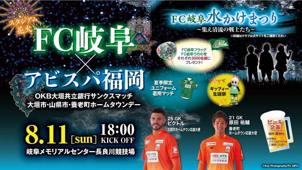 8月11日(日・祝)18:00キックオフ(長良川競技場)
