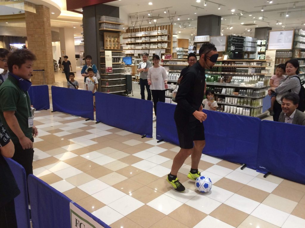 昨年、岐阜に設立されたブラインドサッカーチーム「ミカーレ岐阜」は、ブラインドサッカーの普及のために活動しています。アイマスクをして、専用のボールをドリブルしたり、パスしたりして体験してみましょう。