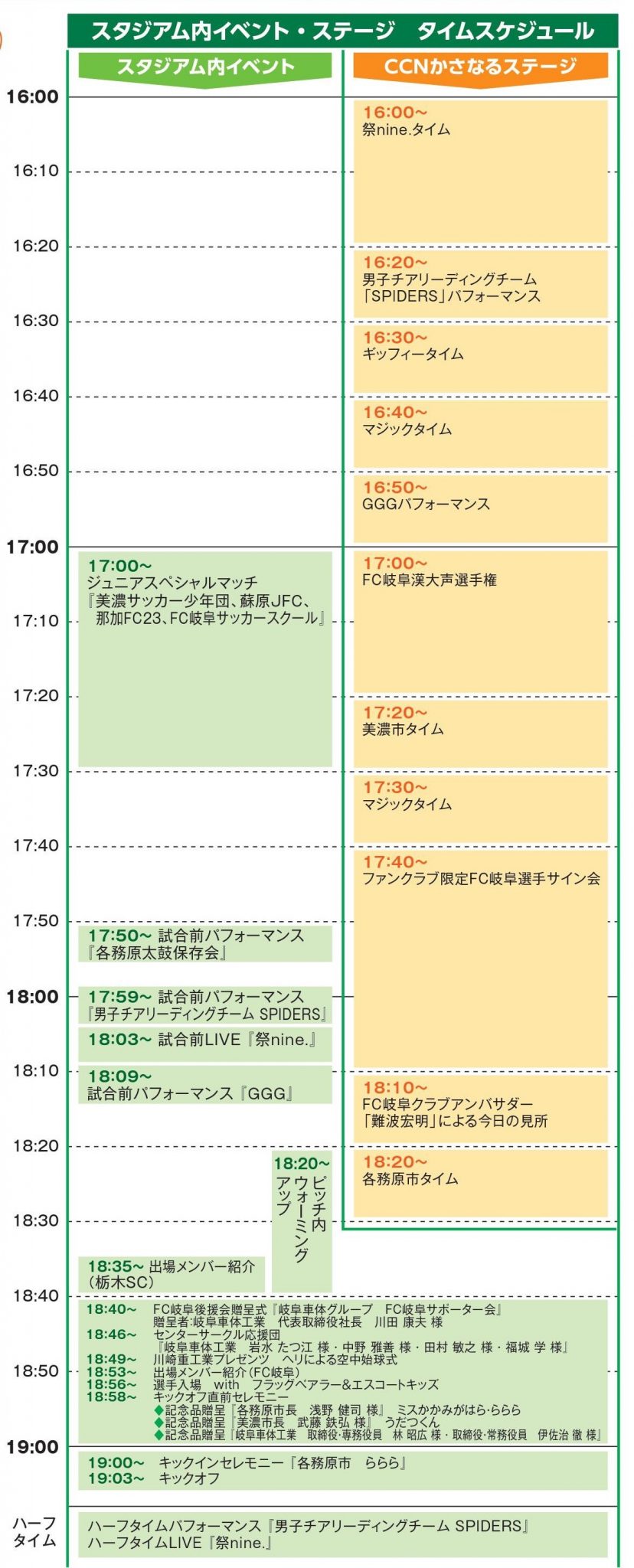 ★CCNプレゼンツFC岐阜かさなるステージ 16:00~【場所:芝生広場東】