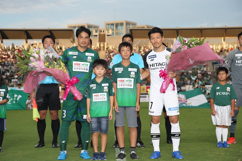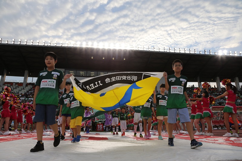 試合前にはデル・ピエロさんと日本特殊陶業ビッグフラッグ隊がセンターサークル応援団としてスタジアムを盛り上げてくれました!