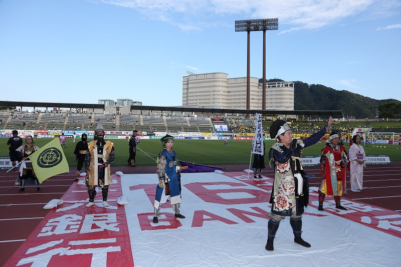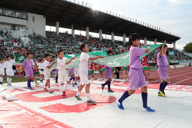 今回が最後のフラッグ隊。GGGと一緒に大きくフラッグを振りながら選手を迎え入れ、スタジアムの雰囲気を盛り上げてくれました。