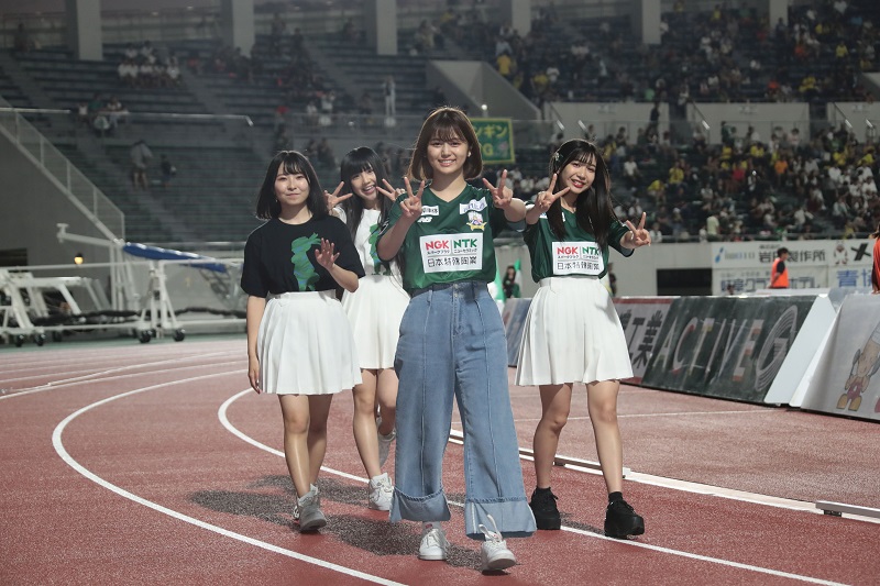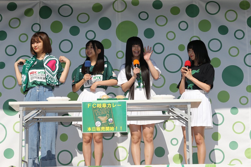 FC岐阜応援隊「SKE48」から、隊長の北野瑠華さん、副隊長の太田彩夏さん、そして北川愛乃さん、杉山愛佳さんが来場。