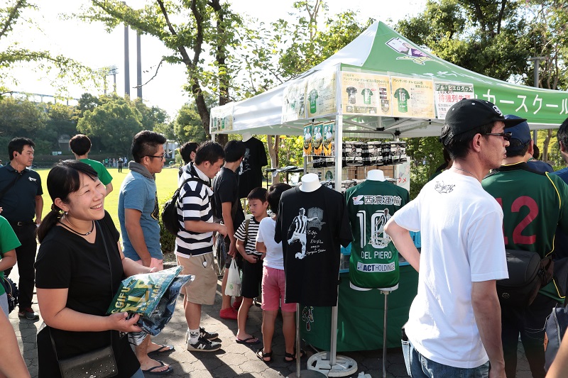 デル・ピエロさんの来場を記念したコラボTシャツやコラボタオルマフラー、ペナントやのど飴を販売!Tシャツやタオルマフラーは完売するほどの人気ぶりでした。