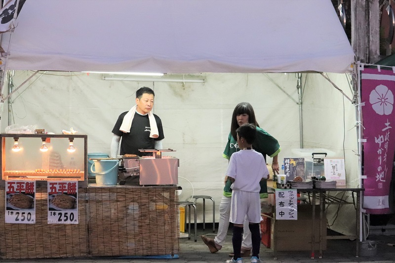 土岐市グルメ・観光ブースでは五平餅を出店。地元ならではの味を皆さんが楽しみました。