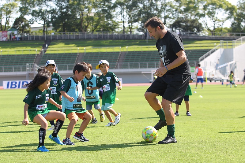 事前募集で集まった子ども達を対象にサッカー教室を開催しました。デルピエロさんと一緒にサッカーができる貴重な機会に子どもたちも大喜び。生き生きとした子どもたちの表情が印象的でした。