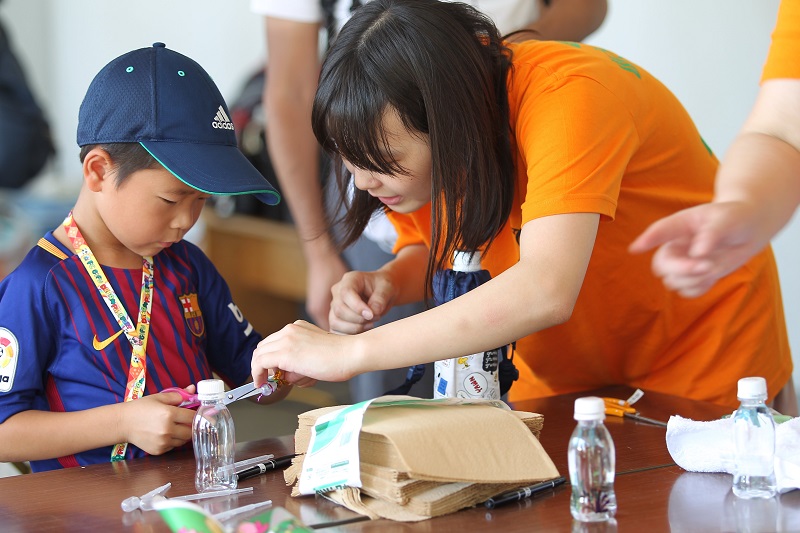 岐阜大学との連携による「夏休みの宿題をスタジアムでやろう!」「環境ミニ講座&工作教室 飛び出せ!サッカーボール:浮沈子、くるくるかざぐるま」を開催しました。