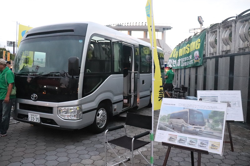 岐阜車体工業サンクスマッチを記念して、メガクルーザー、コースターの車両展示が行われました。