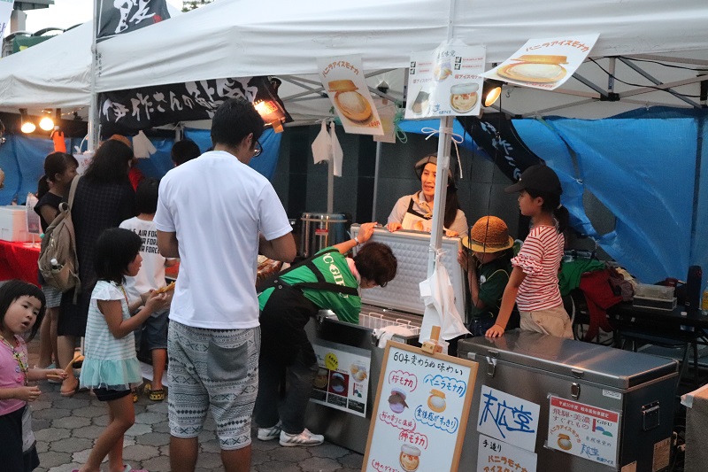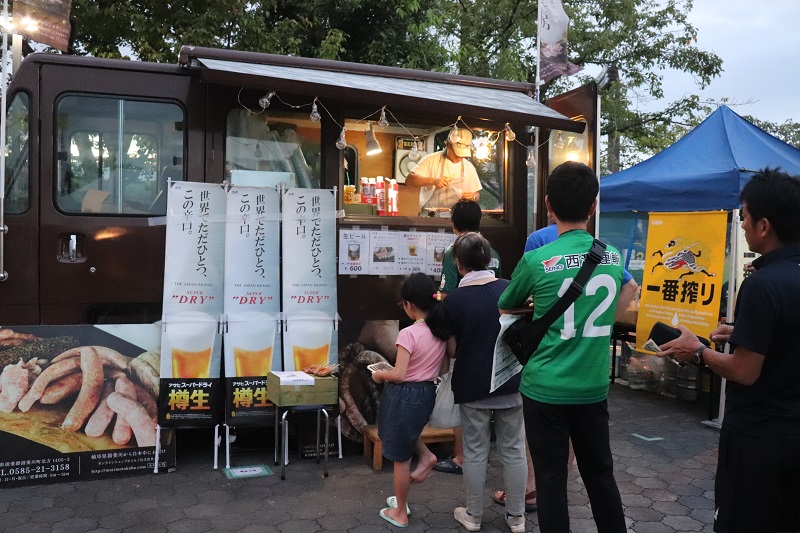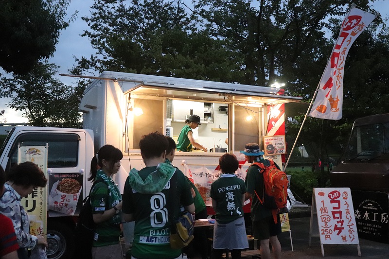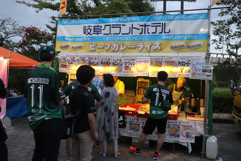 美濃市ブースでは、アイスモナカやコーヒー、鮎飯などが出店。ホームサポーターだけではなく、栃木サポーターにも人気でした。