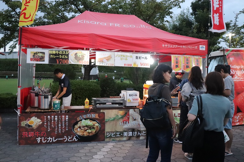屋台村に漢グルメが登場!「飛騨牛のこもり」さん、「岐阜グランドホテル」さん、「ひだコロッケ本舗」さん、「キサラ」さん、「森本工房」さんにご協力いただき、普段のメニューとは一味違った辛いメニューや大盛メニューなど、それぞれの漢グルメを販売して頂きました!