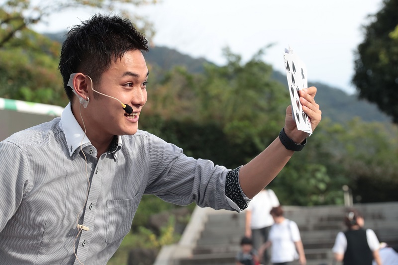 この日もマジシャンの鷲見快成がカードマジックで屋台村を盛り上げてくれました!