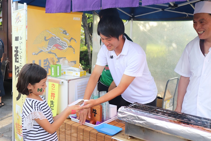 FC岐阜から長倉颯選手が屋台村の「飛騨牛のこもり」さんで一日店長を務めました。