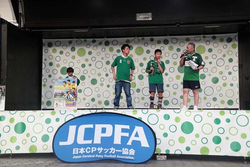 ステージでCPサッカーのフェスティバルのPRをおこなっていただきました。