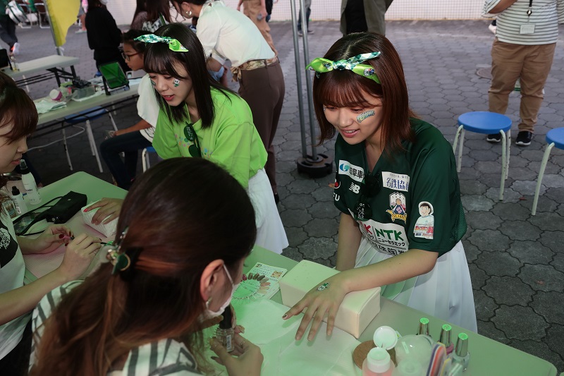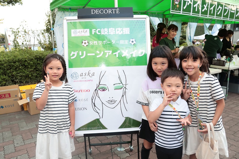 あすかの皆さんに、FC岐阜応援グリーンアイメイクを行なっていただきました。