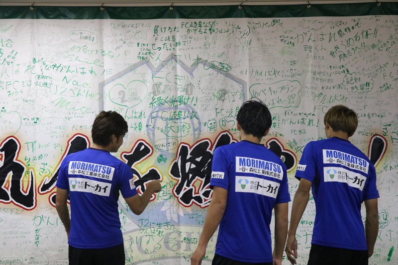 前回のホームゲームの際に皆さんに書き込んで頂いたメッセージバナーは、選手のアップエリアに掲示させていただきました。