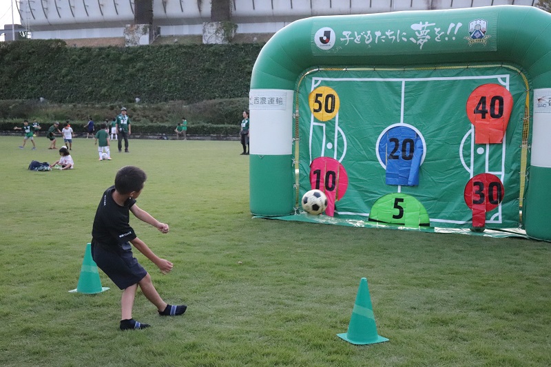 ボールパークでは、キックターゲット・フットゴルフ・体力測定を実施しました。