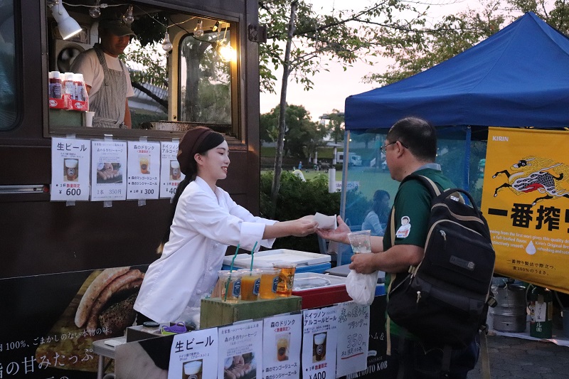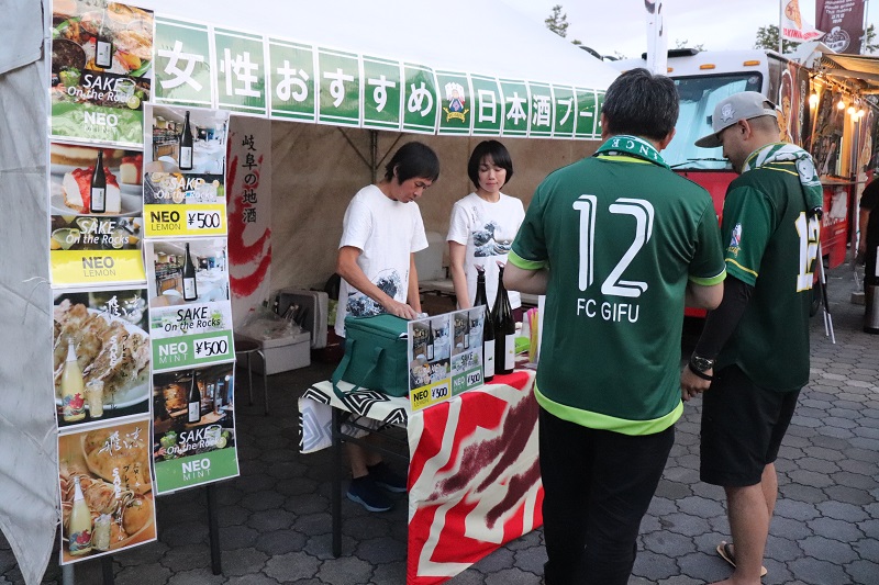女性におすすめの日本酒をカップで販売。日本酒ハイボール専用酒「飛沫-SHIBUKI-」や、ロック専用で低アルコールの日本酒「NEO SAKE(MINT、LEMON)」など、蔵元林本店さんのこだわりが詰まった日本酒に皆さん興味津々でした。