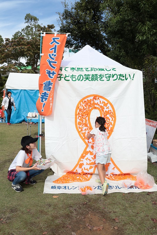 子ども虐待防止キャンペーンとして「ぎふオレンジリボンイベント」を開催。ステージでも啓発活動が実施されました。