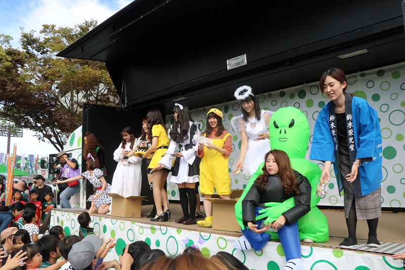 ステージ横ではキャンディのつかみ取りが行われました。皆さん手をいっぱいに広げてたくさんのキャンディをゲットしていました。