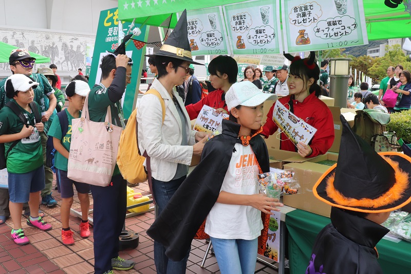 インフォメーションブースで、「トリックオアトリート」と言ってくれた方に、お菓子をプレゼント!さらに仮装来場者500名限定で、ギッフィーのオリジナルコップをプレゼントいたしました。
