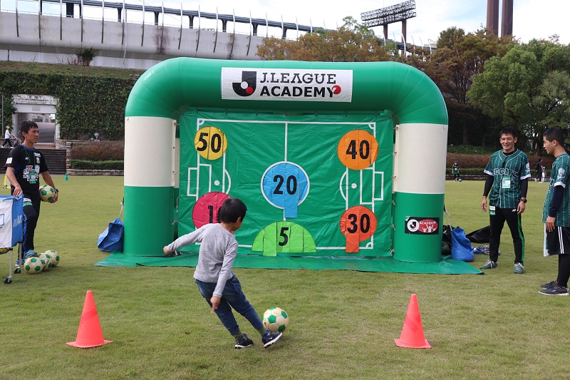 芝生広場ではキックターゲットを実施しました。皆さん上手に得点を狙っていました。