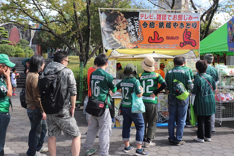 愛媛FCから「やきとり山鳥」が出張販売。地鶏「伊予水軍鶏」がいただけるとあって、長蛇の列ができていました!