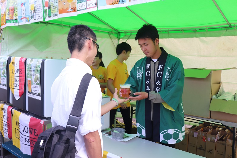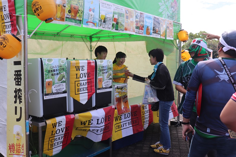 12種類のクラフトビールが飲み比べできるブースでは三島頌平選手もお手伝い。