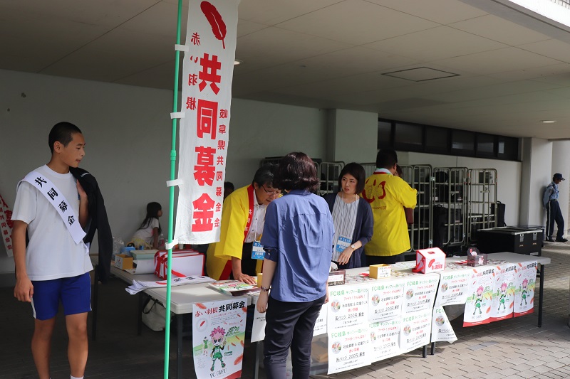 200円以上募金して頂いた方には、ギッフィー缶バッジ等をプレゼント!さらにビクトル選手、小野悠斗選手も参加を呼び掛けてくれました。赤い羽根共同募金にご協力いただいた皆様ありがとうございました。