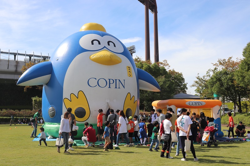 芝生広場にふわふわコペンちゃん、ボールプールが登場。多くの子どもたちで大人気でした。