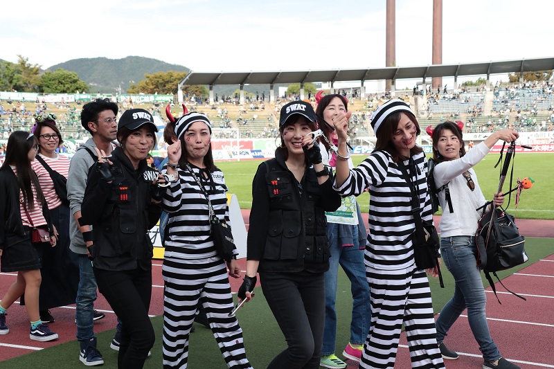 仮装来場者限定で、ハーフタイムにパレードを実施!個性的な仮装から可愛い仮装まで、様々な仮装で皆さんを楽しませてくれました!
