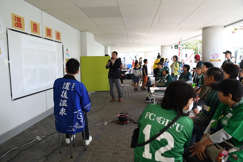 はるばる愛媛県より道後温泉のPRで長良川競技場にお越しいただきました。日本三古湯のひとつである道後温泉に、ぜひ皆さんも足を運んでみてください!