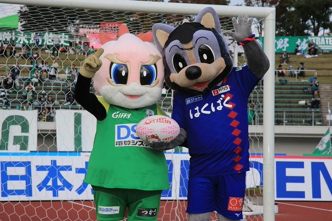 Also, we welcomed Ventforet Kofu mascot Vent-kun to Gifu, and he participated in a penalty shoot out – with a rugby ball!