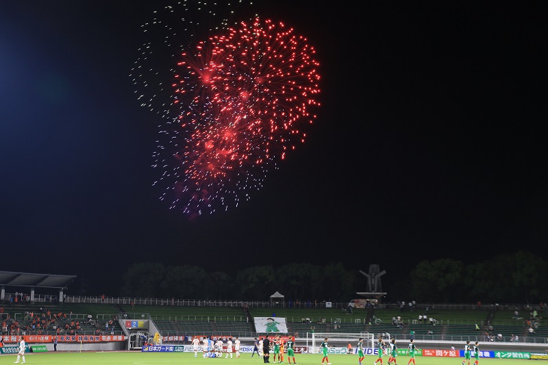 新型コロナウイルス感染症の1日も早い収束と7月豪雨災害で被害にあわれた方々への心よりのお見舞いをこめて、そして皆様に笑顔になって頂くために、スタジアム花火をおこないます。