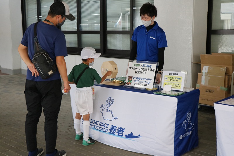 ボートレースチケットショップ養老のPRブースでは、コラボグッズが当たるガラガラ抽選がおこなわれました。