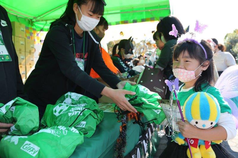 仮装来場者限定で、お菓子入りのギッフィー巾着をプレゼント。皆さんの嬉しそうな顔が印象的でした。