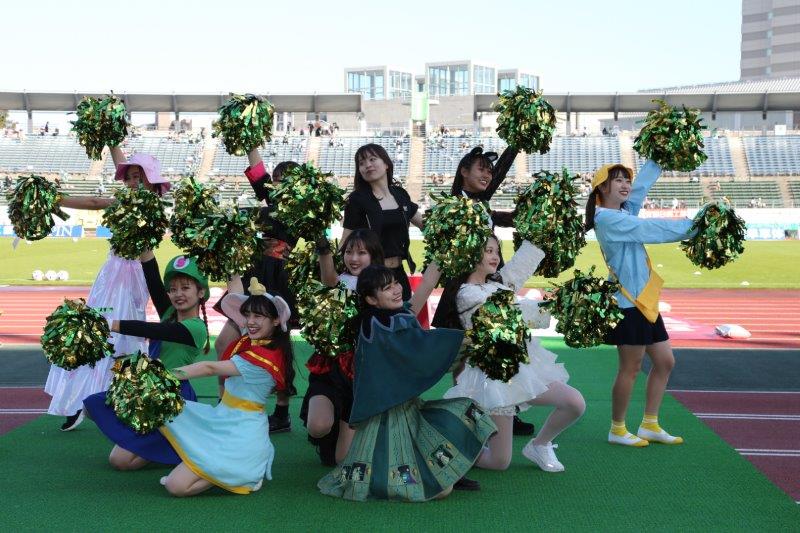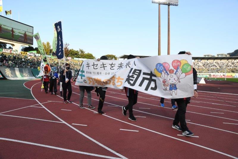 関市やミナモ、仮装した皆さんがハーフタイムキャラバンをおこないました。