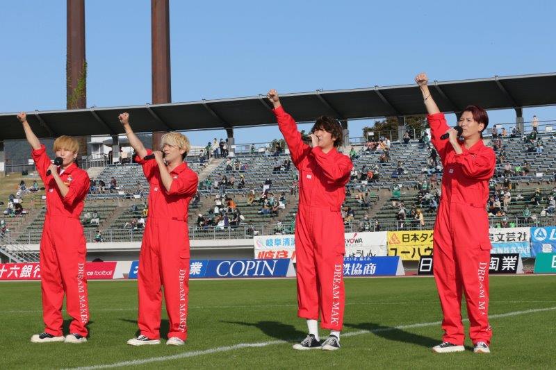 昨日はFC岐阜のホームゲームで4人組エンターテイメントボーカルグループ「DREAM MAKER」(@dreammaker_dm)さんがスタジアムLIVEをしてくれて、ご一緒できて楽しかった☺️