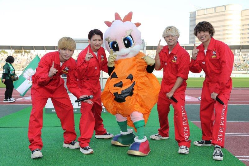 関西出身4人組エンターテイメントボーカルグループ「DREAM MAKER」が来場。現在、タイヤショップ早野のテレビ・映画館・ラジオCMに出演している彼らが、ステージや試合前・ハーフタイムに熱いLIVEを披露してくれました!