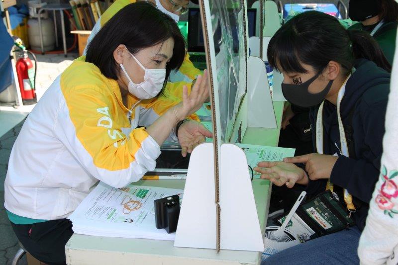 野菜の摂取量を知ることができるベジタブルチェックブースは、列ができるなど多くの方で賑わっていました。