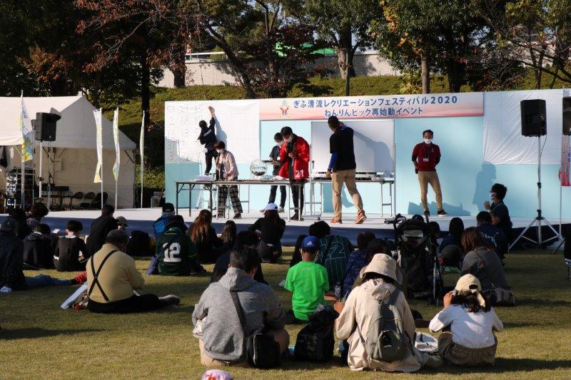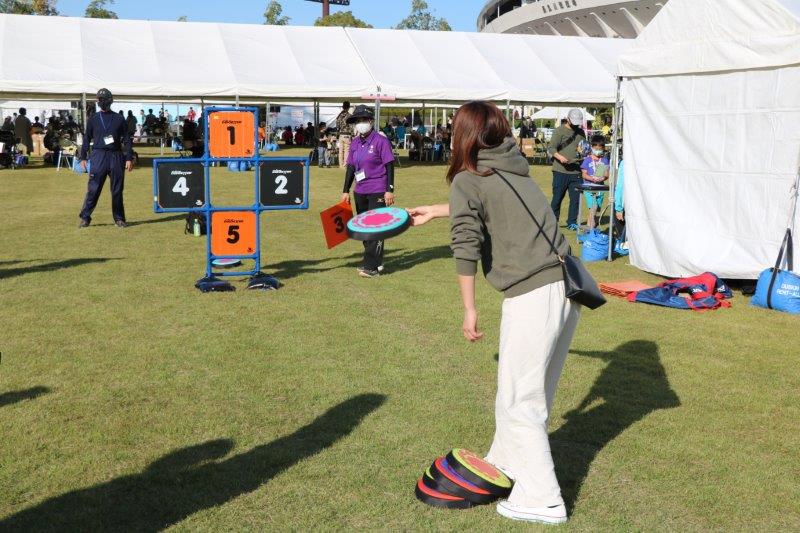 芝生広場では、ねんりんピック再始動イベントが開催されました。種目体験や、ステージイベント、スタンプラリーなどが行われ、多くの方が楽しんでいました。