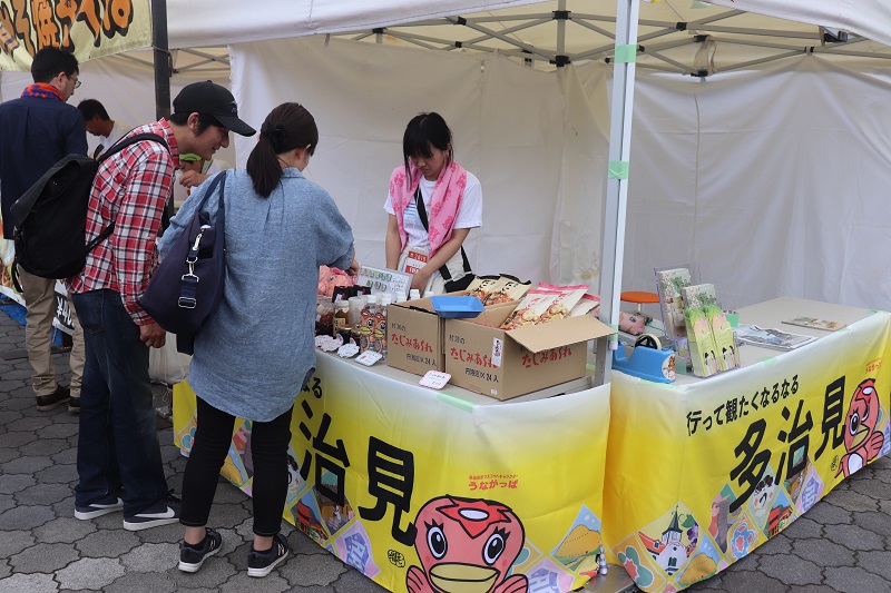 かいづっちグッズの販売、海津市の魅力をお伝えする観光PRブースです。