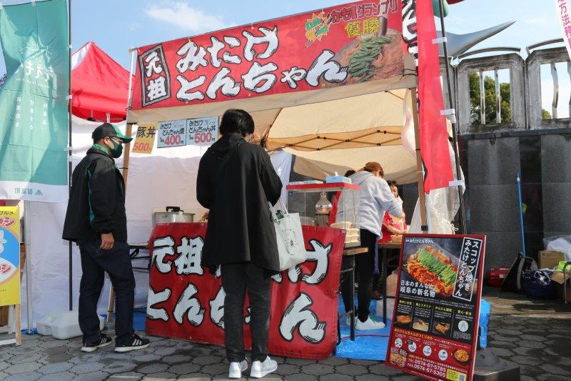 御嵩町からは、元祖みたけとんちゃん焼きやみたけとんちゃん丼が出店。いい匂いが屋台村に広がりました。