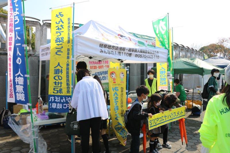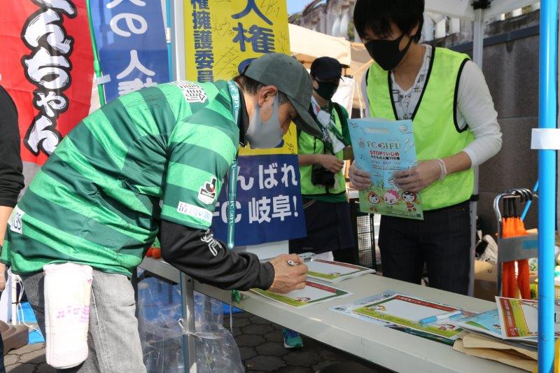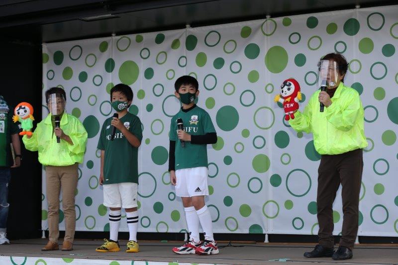 ステージで、FC岐阜サッカースクールの子どもたちと一緒に人権の大切さをPRしていただきました。