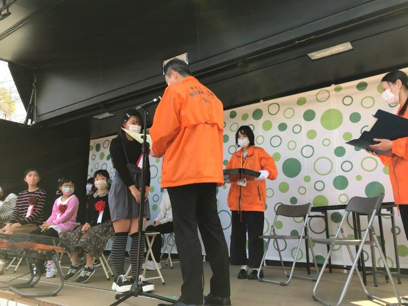 子ども虐待防止に向けた市民の意識啓発を図るための「家族の絆」、「親子のふれあい」をテーマとした「絵てがみ」コンテストの表彰式をおこないました。