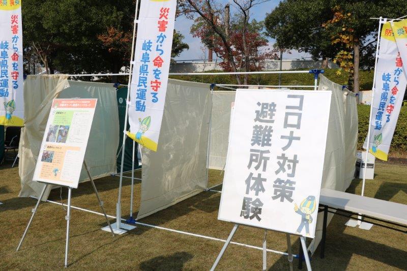 岐阜県が展開する「災害から命を守る岐阜県民運動」との連携企画として、防災啓発パネル展示、避難所体験コーナー、景品があたる抽選会を実施いたしました。