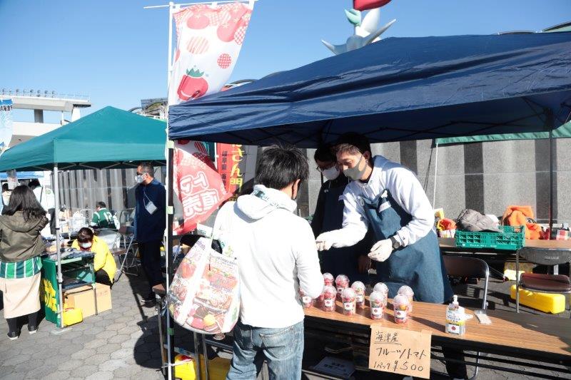 海津市ブースでは、マスコットキャラクターの「かいづっち」グッズの販売や、海津市産のフルーツトマトの販売をおこなっていただきました。